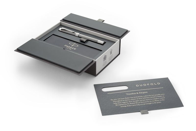 Ручка роллер Parker Duofold Prestige Ruthenium Chiselled CT от официального дилера Parker в Калининграде. Вы можете дополнительно заказать гравировку, которая подчеркнет Вашу оригинальность и придаст памятность статусному подарку. Все ручки Паркер поставляются в фирменном футляре.